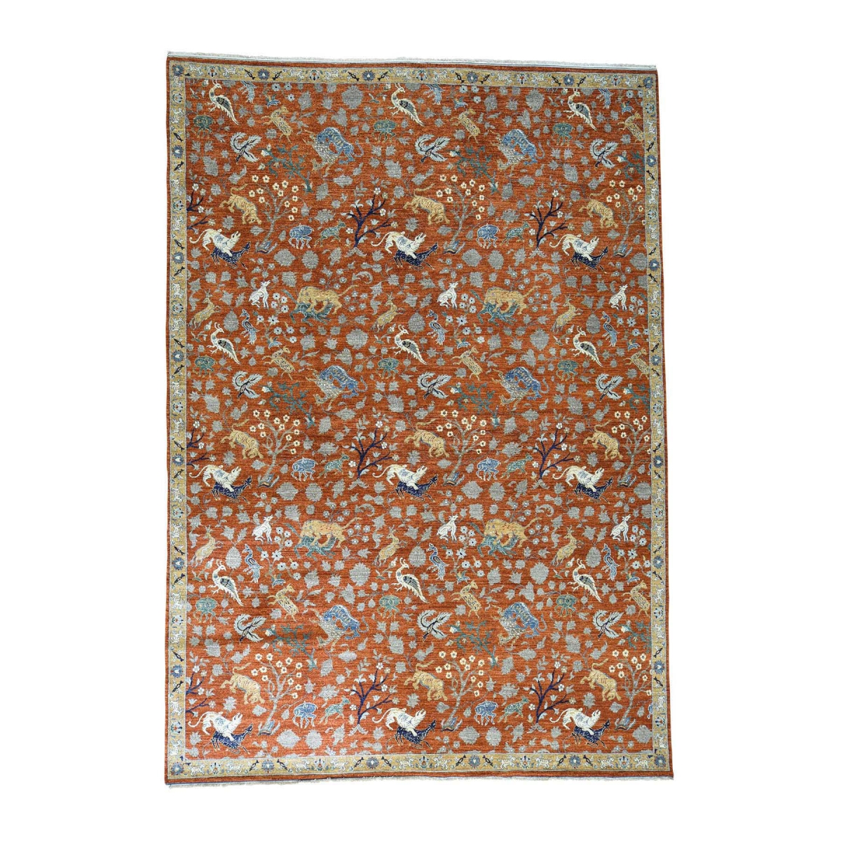 Hand-knotted pure wool hunting design tabriz peshawar rug