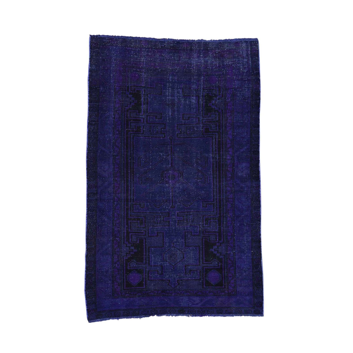 1800 Get A Rug sh33768 4 ft. 3 in. x 6 ft. 10 in. Hand Knotted Overdyed Persian Hamadan Worn Wide Runner Rug Purple