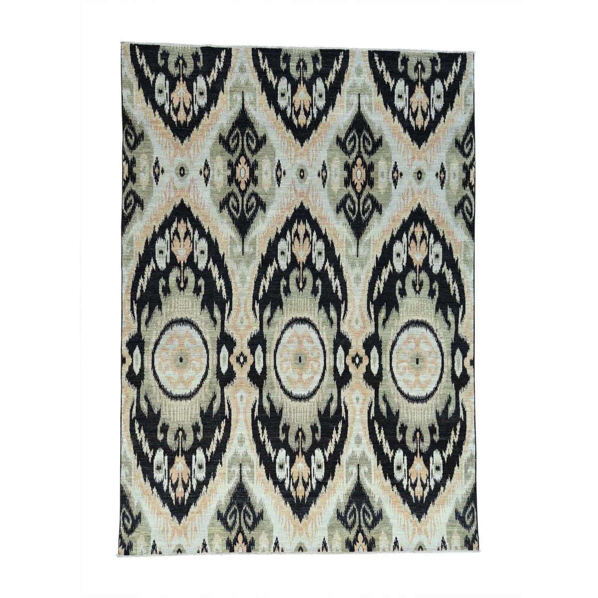 100 Percent wool ikat uzbek design hand-knotted oriental rug
