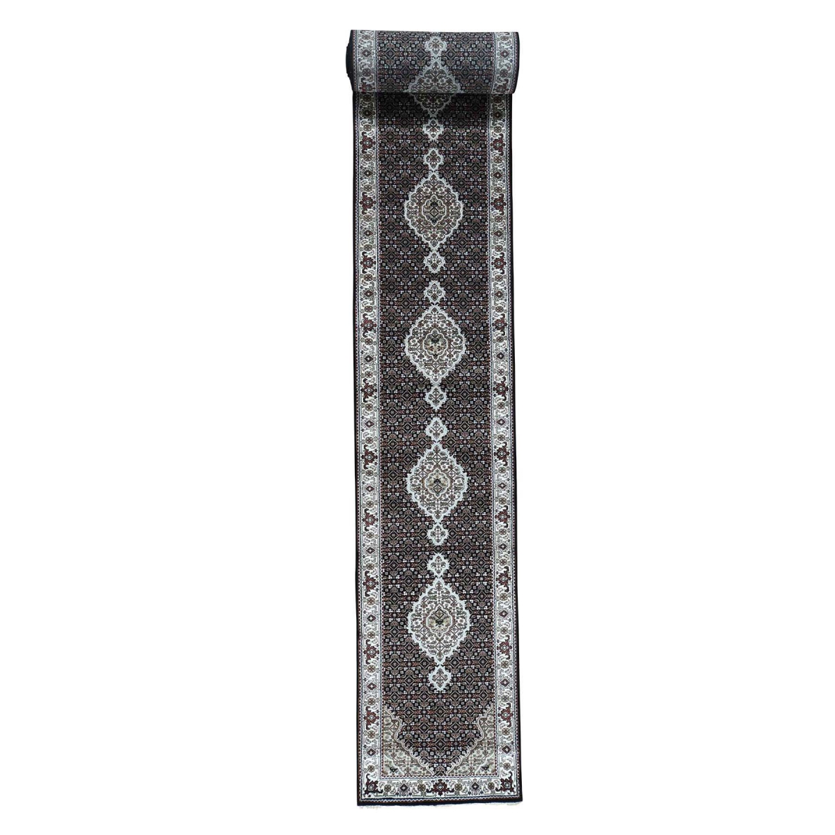 1800 Get A Rug sh33829 2 ft. 8 in. x 24 ft. Wool and Silk Hand Knotted 250 KPSI Tabriz Mahi Runner Rug Black - Extra Large
