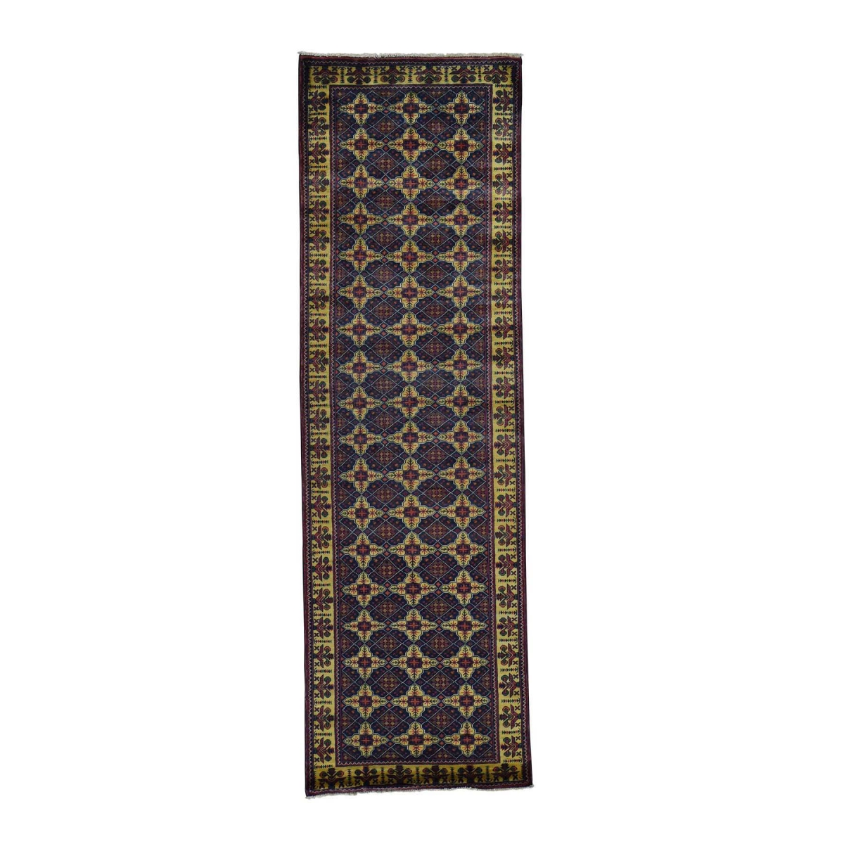 1800 Get A Rug sh33833 3 ft. x 9 ft. 9 in. Afghan Khamyab Vegetable Dyes Pure Wool Hand Knotted Runner Rug Blue