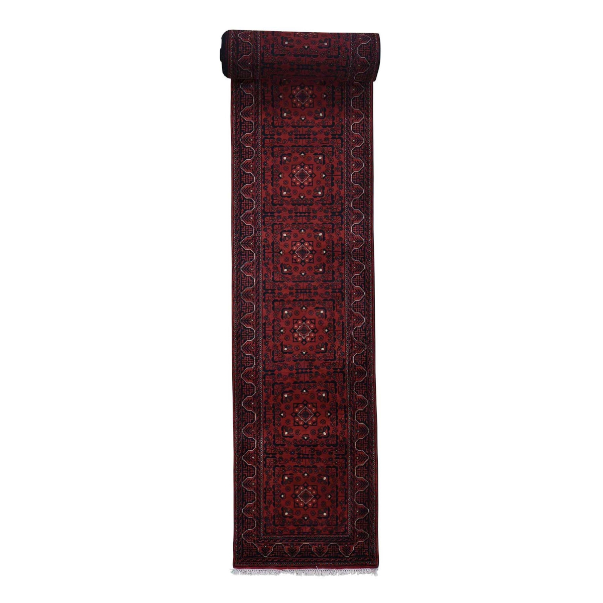 1800 Get A Rug sh33840 2 ft. 9 in. x 31 ft. 9 in. Hand Knotted Pure Wool Afghan Khamyab Oriental Runner Rug Red - Extra Large