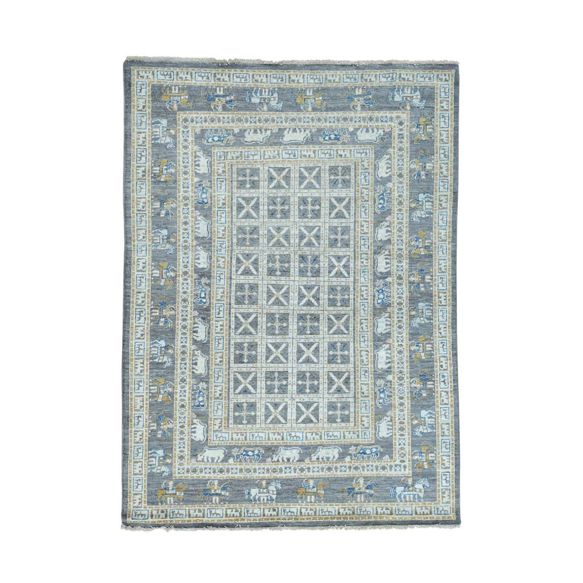 Hand-knotted antiqued pazyryk design silver wash oriental rug