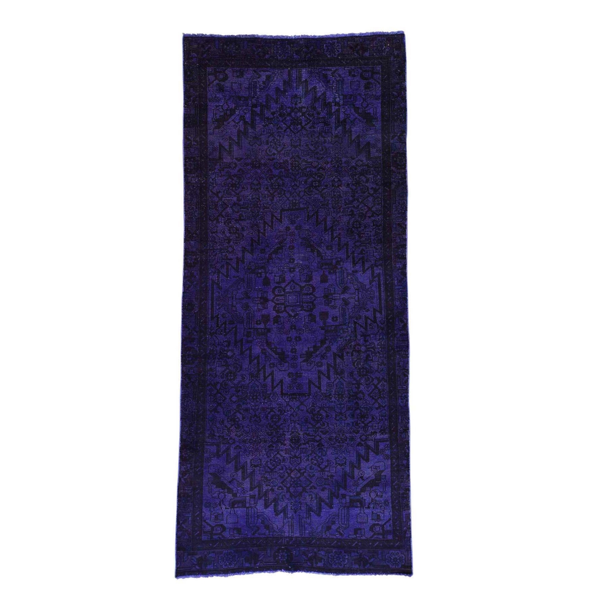 Features- Hand-knotted purple overdyed hamadan pure wool wide runner rug