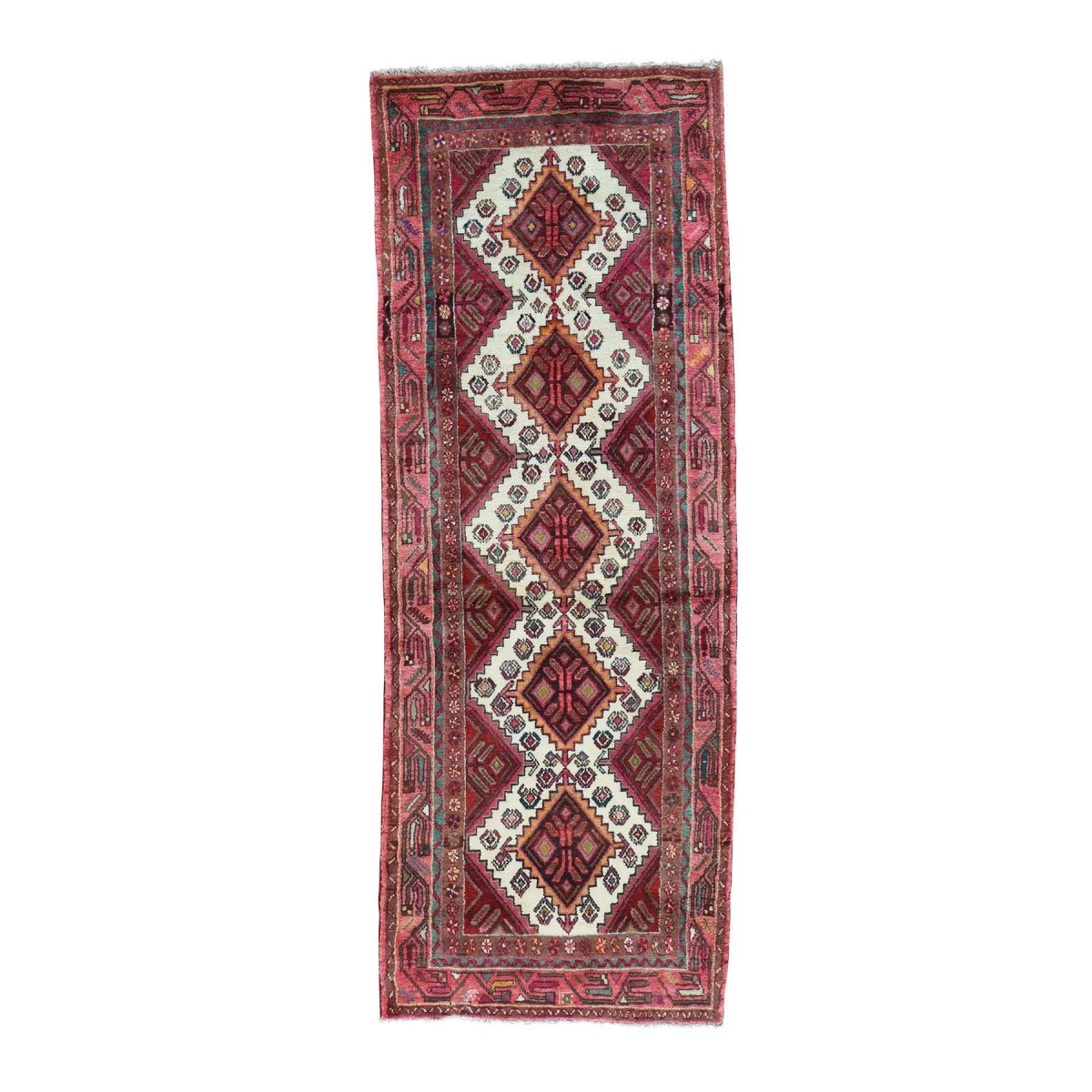 1800 Get A Rug sh33918 3 ft. 7 in. x 10 ft. Hand Knotted Persian Hamadan Wide Runner Rug Ivory