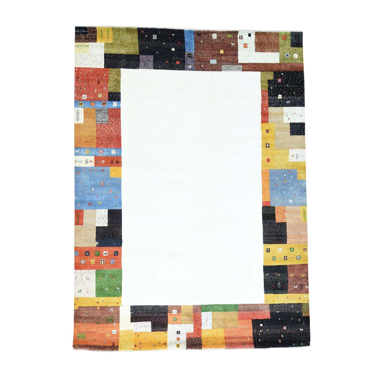 1800 Get A Rug sh34012 9 ft. 8 in. x 13 ft. 5 in. 100 Percent Wool Hand Knotted Folk Art Gabbeh Oriental Rug Ivory
