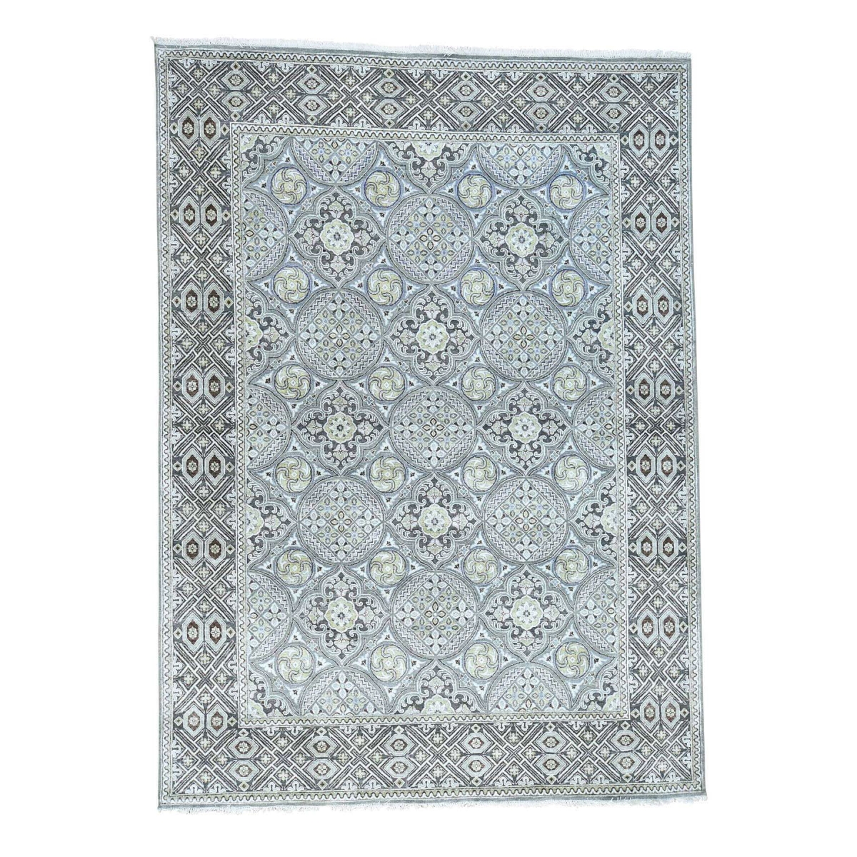 1800 Get A Rug sh34038 10 ft. x 14 ft. High and Low Pile Oxidized Wool with Bamboo Silk Hand Knotted Rug Grey