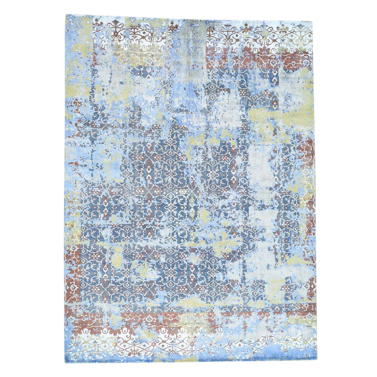 1800 Get A Rug sh34041 9 ft. 9 in. x 14 ft. Oxidized Wool with Bamboo Silk Abstract Design Handmade Rug Multicolor