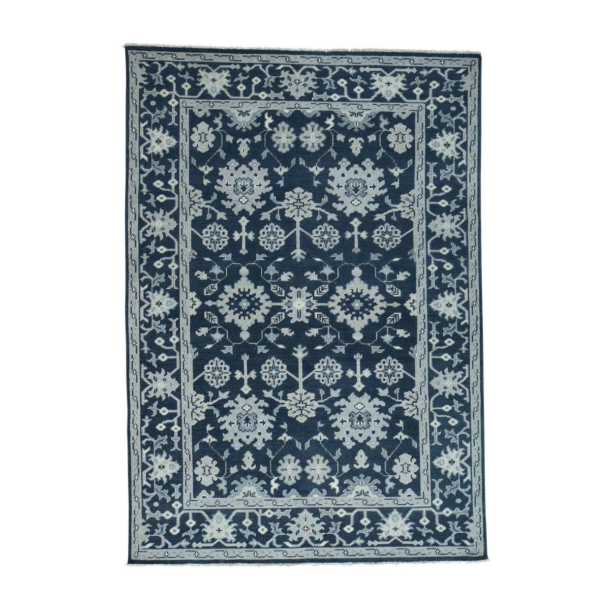 1800 Get A Rug sh34053 6 ft. 2 in. x 8 ft. 10 in. Handmade Turkish Knot Oushak Cropped Thin Pure Wool Rug Blue