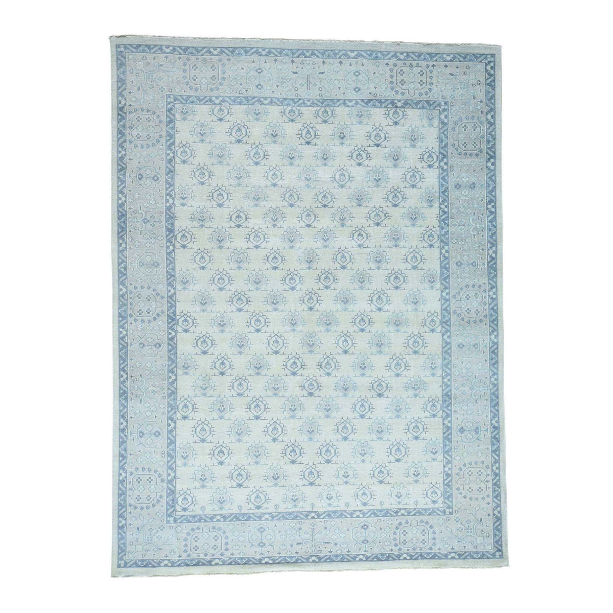 1800 Get A Rug sh34081 8 ft. x 9 ft. 10 in. Pure Wool Hand Knotted Turkish Knot Oushak Cropped Thin Rug Blue
