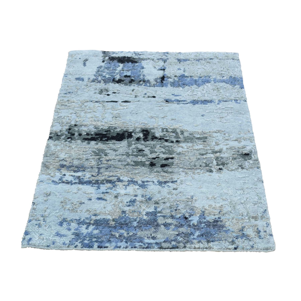 1800 Get A Rug sh34120 2 ft. x 3 ft. High and Low Pile Abstract Design Wool and Bamboo Silk Handmade Rug Blue