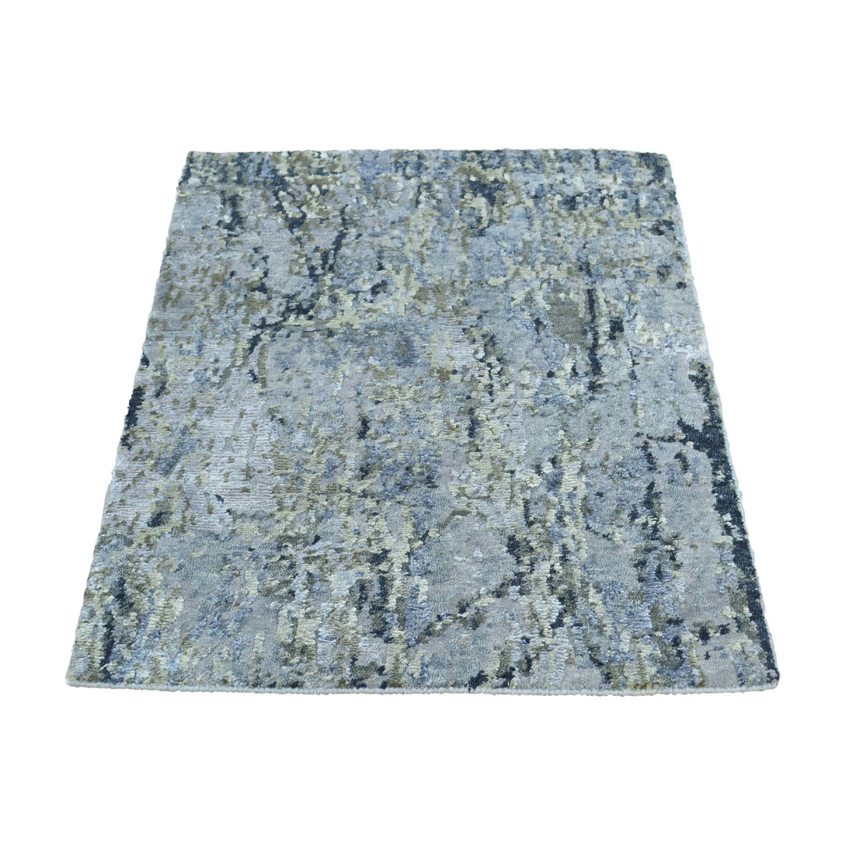 1800 Get A Rug sh34123 2 ft. x 3 ft. High and Low Pile Abstract Design Wool and Bamboo Silk Handmade Rug Grey