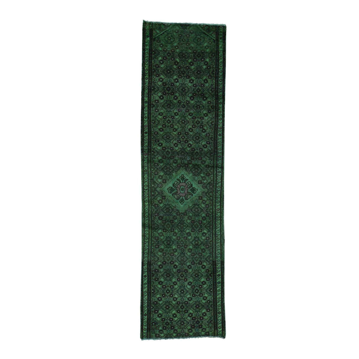 1800 Get A Rug sh34161 2 ft. 6 in. x 9 ft. 3 in. Overdyed Persian Hamadan Hand Knotted Pure Wool Runner Rug Green