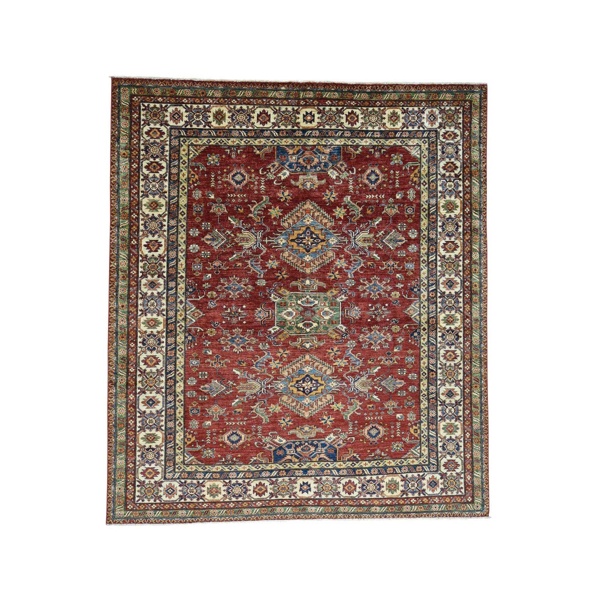 Features- This is a truly genuine one-of-a-kind hand-knotted pure wool red super kazak oriental rug