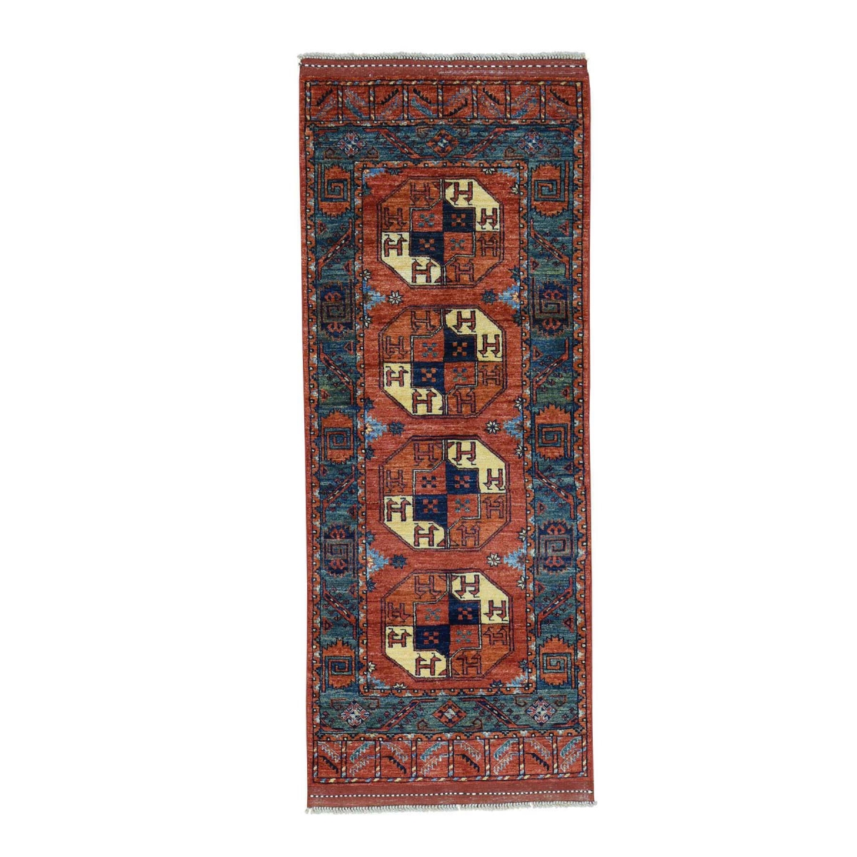 Features- This is a truly genuine one-of-a-kind hand-knotted elephant feet design turkoman ersari runner rug