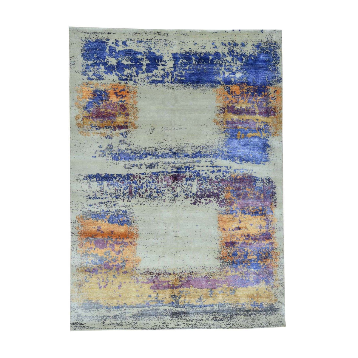 Features- This is a truly genuine one-of-a-kind hand-knotted wool and silk modern abstract design oriental rug