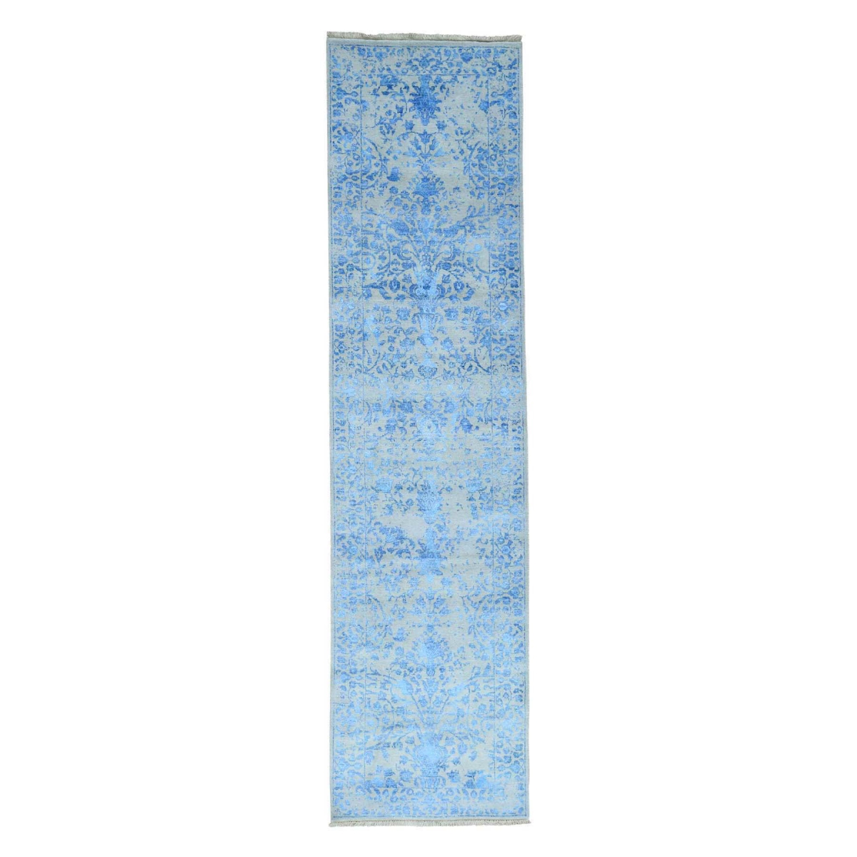 1800 Get A Rug sh34257 3 ft. x 11 ft. 9 in. Hand Knotted Wool and Silk Floral Erased Design Runner Rug Grey