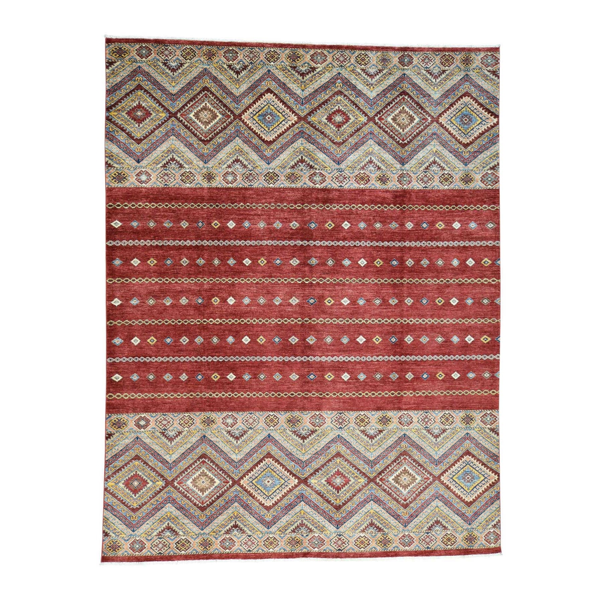 1800 Get A Rug sh34309 9 ft. 2 in. x 11 ft. 10 in. Hand Knotted Khorjin Design Super Kazak Oriental Rug Red