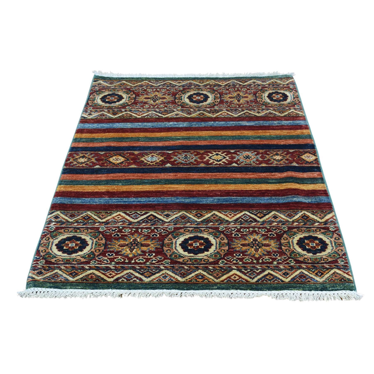 1800 Get A Rug sh34320 2 ft. 8 in. x 4 ft. 3 in. Hand Knotted Super Kazak Khorjin Design Pure Wool Oriental Rug Multicolor