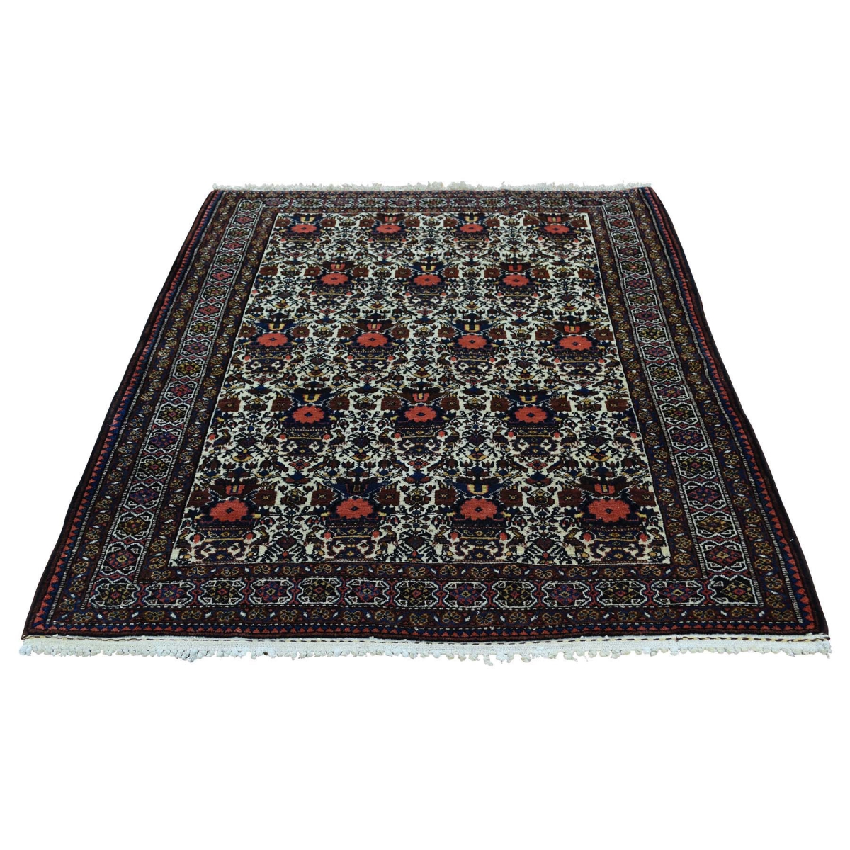 1800 Get A Rug sh34423 3 ft. 8 in. x 5 ft. Old Persian Joshagan Pure Wool Hand Knotted Oriental Rug Ivory