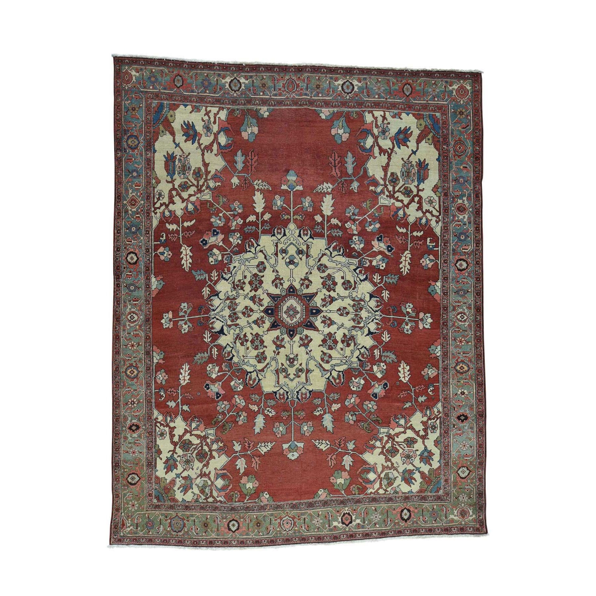 Features- This is a truly genuine one-of-a-kind hand-knotted antique persian serapi open field oriental rug