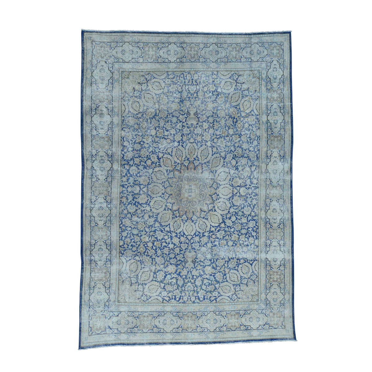 1800 Get A Rug sh34466 8 ft. x 11 ft. 7 in. Hand Knotted White Wash Kerman Zero Pile Shaved Thin Rug Blue