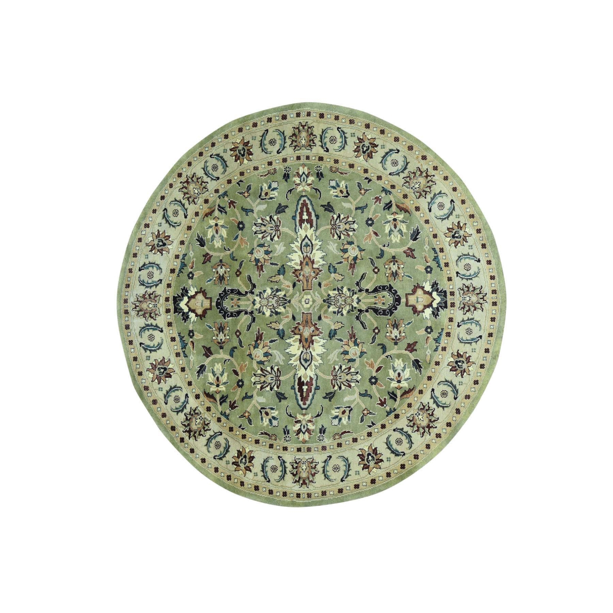 Features- This is a truly genuine one-of-a-kind hand-knotted round mahal light green pure wool oriental rug