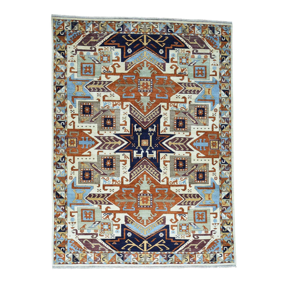 1800 Get A Rug sh34514 9 ft. 3 in. x 12 ft. 2 in. Hand Knotted Geometric Design Super Kazak Pure Wool Rug Multicolor