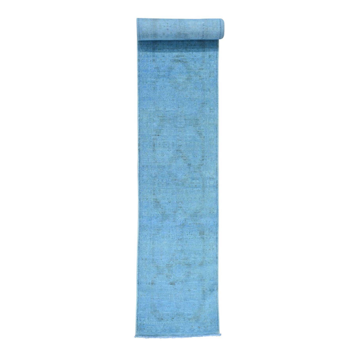 1800 Get A Rug sh34524 2 ft. 8 in. x 19 ft. 2 in. Hand Knotted Peshawar Overdyed Pure Wool Runner Rug Blue - Extra Large