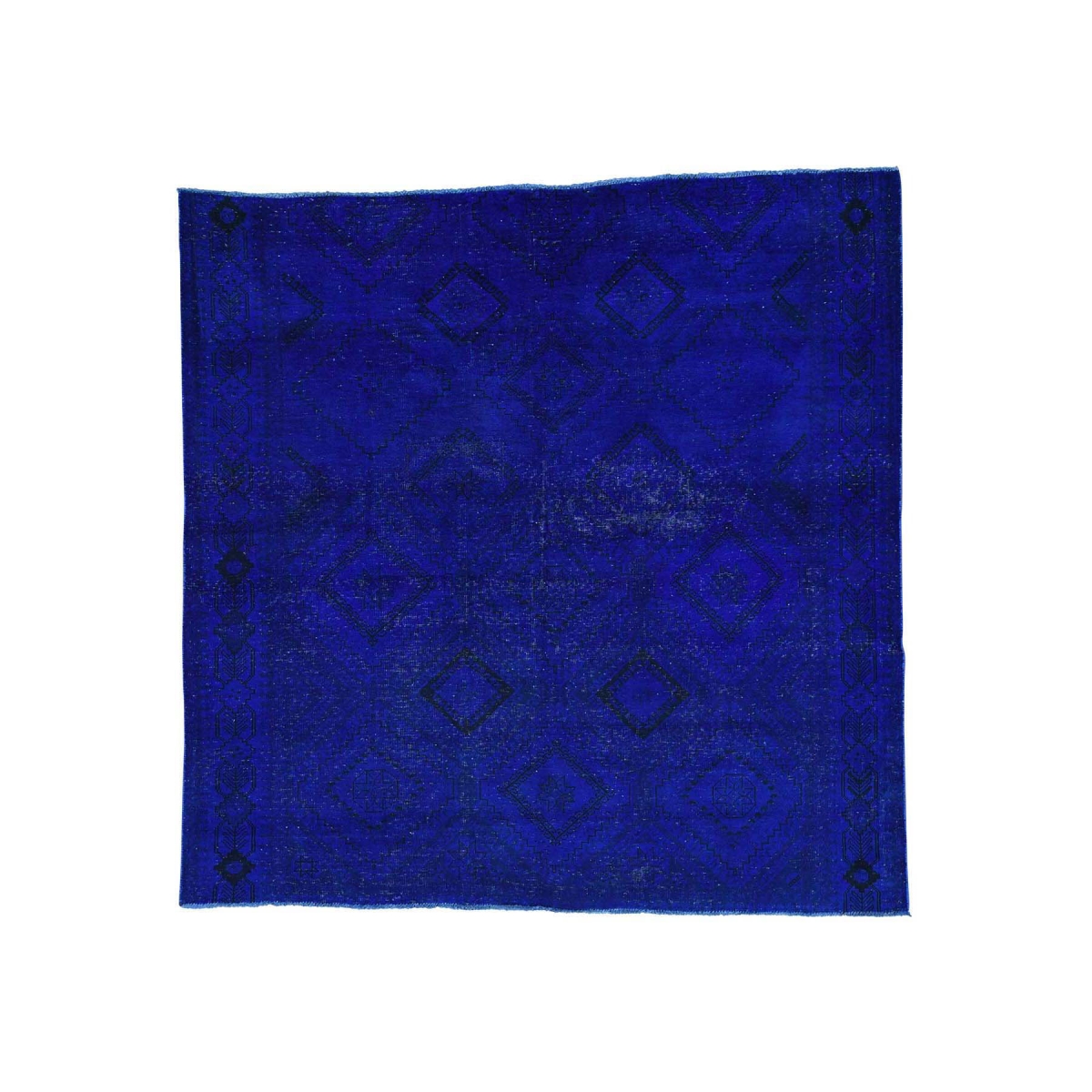 1800 Get A Rug sh34534 6 ft. 6 in. x 6 ft. 9 in. Handmade Square Overdyed Hamadan Fragment Pure Wool Rug Navy