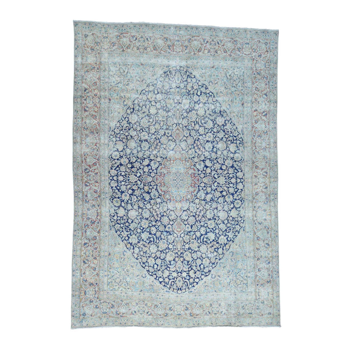 1800 Get A Rug sh34584 9 ft. x 13 ft. Hand Knotted White Wash Kerman Zero Pile Shaved Thin Oriental Rug Blue