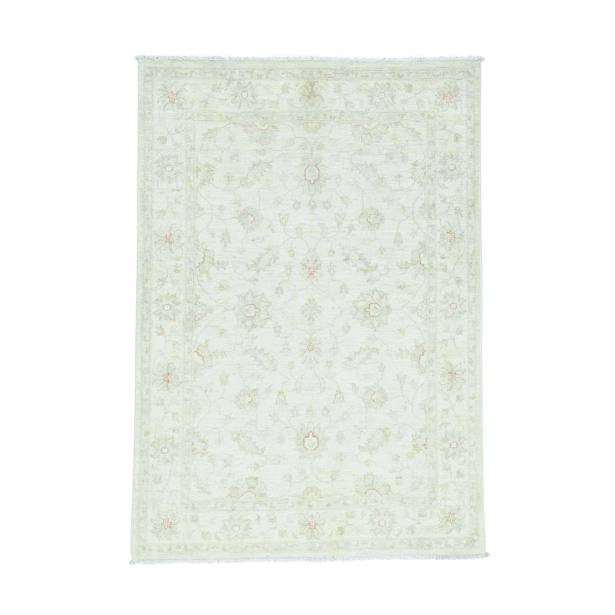 1800 Get A Rug sh34598 4 ft. 10 in. x 7 ft. Hand Knotted Pure Wool White Wash Peshawar Oriental Rug Ivory