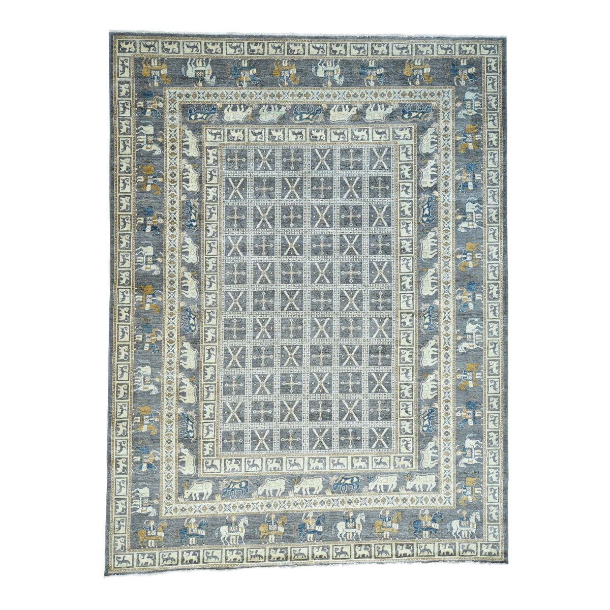 1800 Get A Rug sh34599 10 ft. 1 in. x 12 ft. 9 in. Hand Knotted Antiqued Pazyryk Design Peshawar Oriental Rug Grey