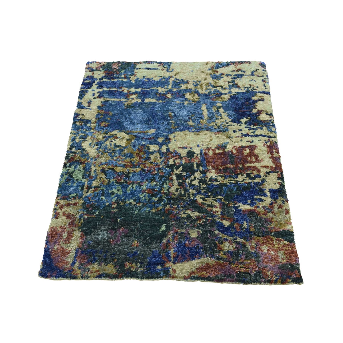 1800 Get A Rug sh34626 2 ft. x 3 ft. Hand Knotted High and Low Pile Contemporary Abstract Design Wool and Silk Rug Multicolor