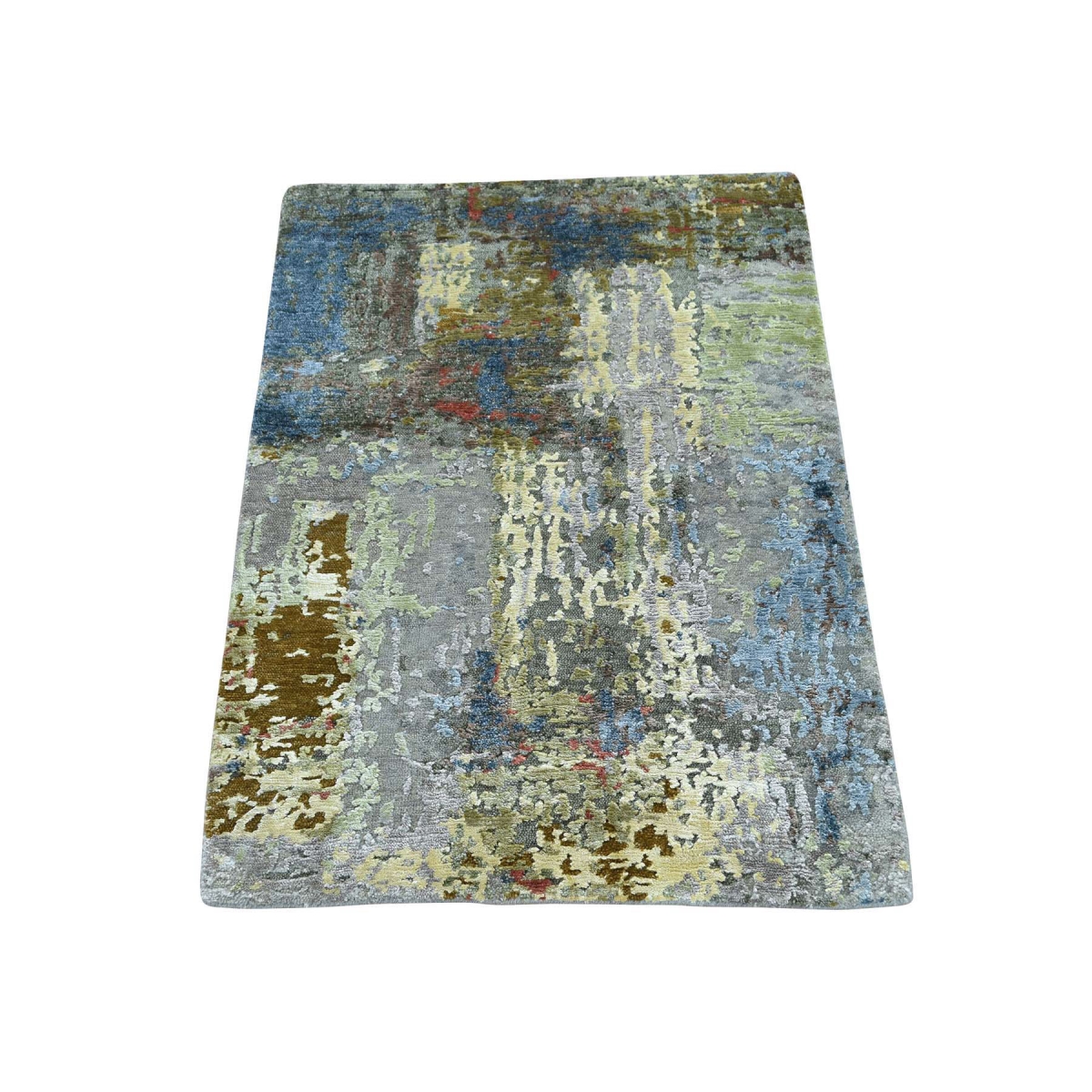 1800 Get A Rug sh34628 2 ft. x 3 ft. Hand Knotted High and Low Pile Abstract Design Wool and Silk Rug Multicolor