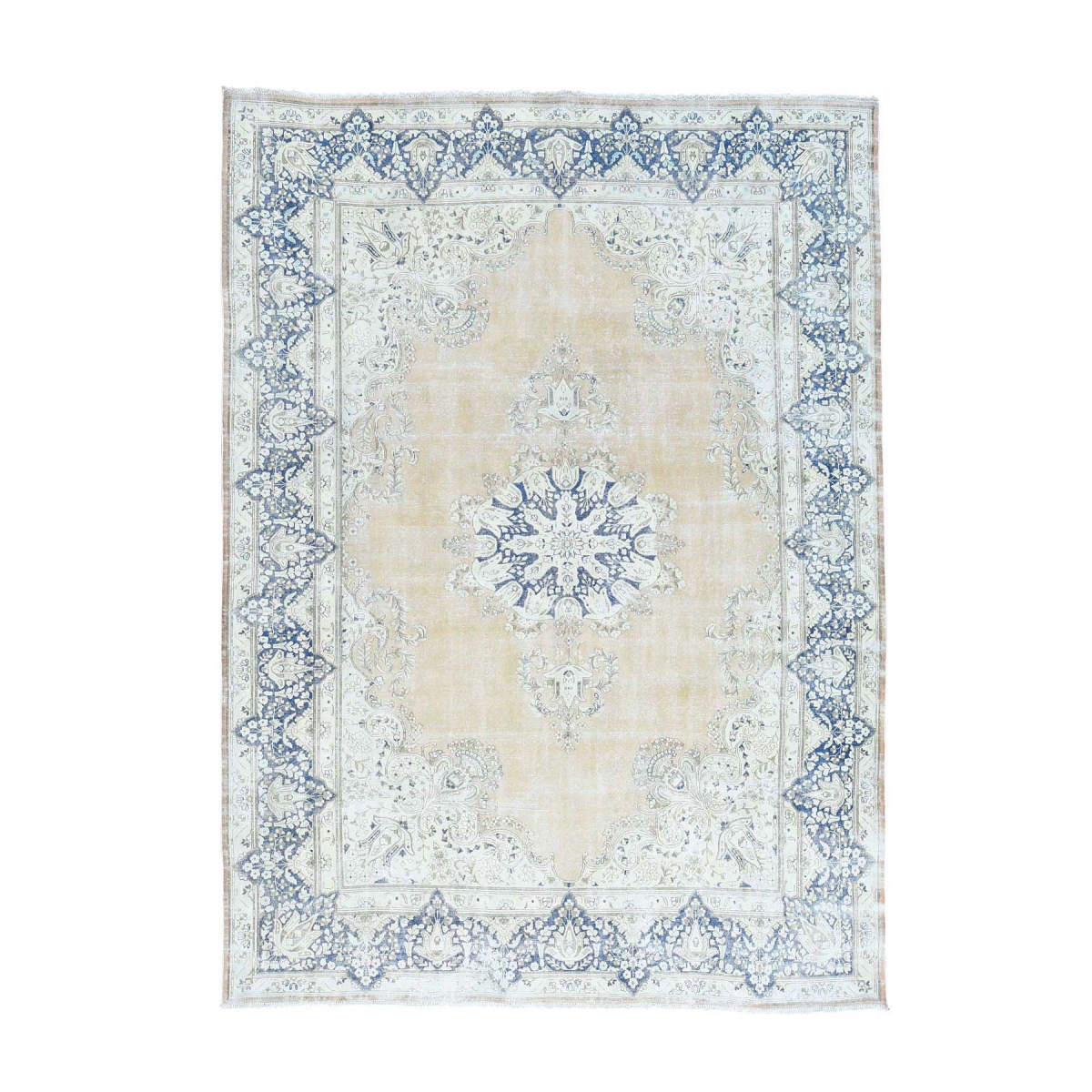 1800 Get A Rug sh34634 8 ft. 4 in. x 11 ft. 6 in. Handmade White Wash Kerman Zero Pile Shaved Thin Oriental Rug Beige