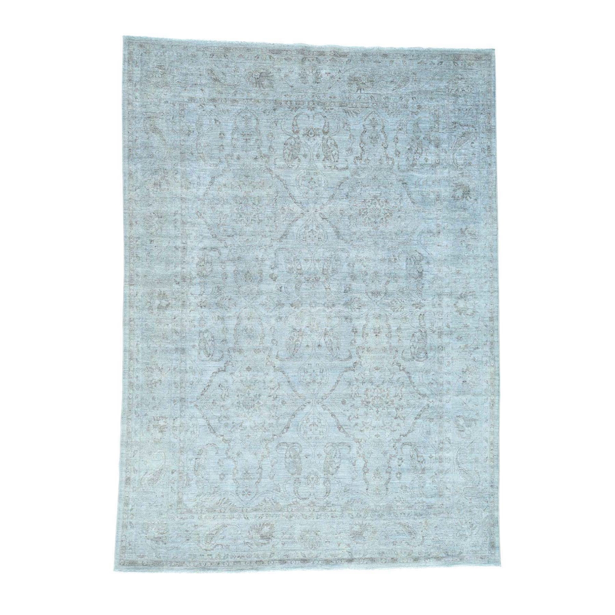 Features- This is a truly genuine one-of-a-kind hand-knotted silver wash pure wool peshawar oriental rug