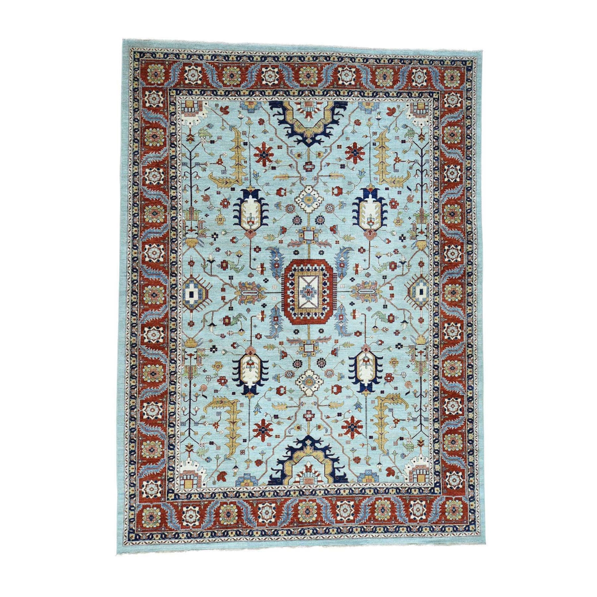 1800 Get A Rug sh34640 10 ft. x 13 ft. 7 in. Antiqued Heriz Hand Knotted Sky Blue Pure Wool Oriental Rug Blue