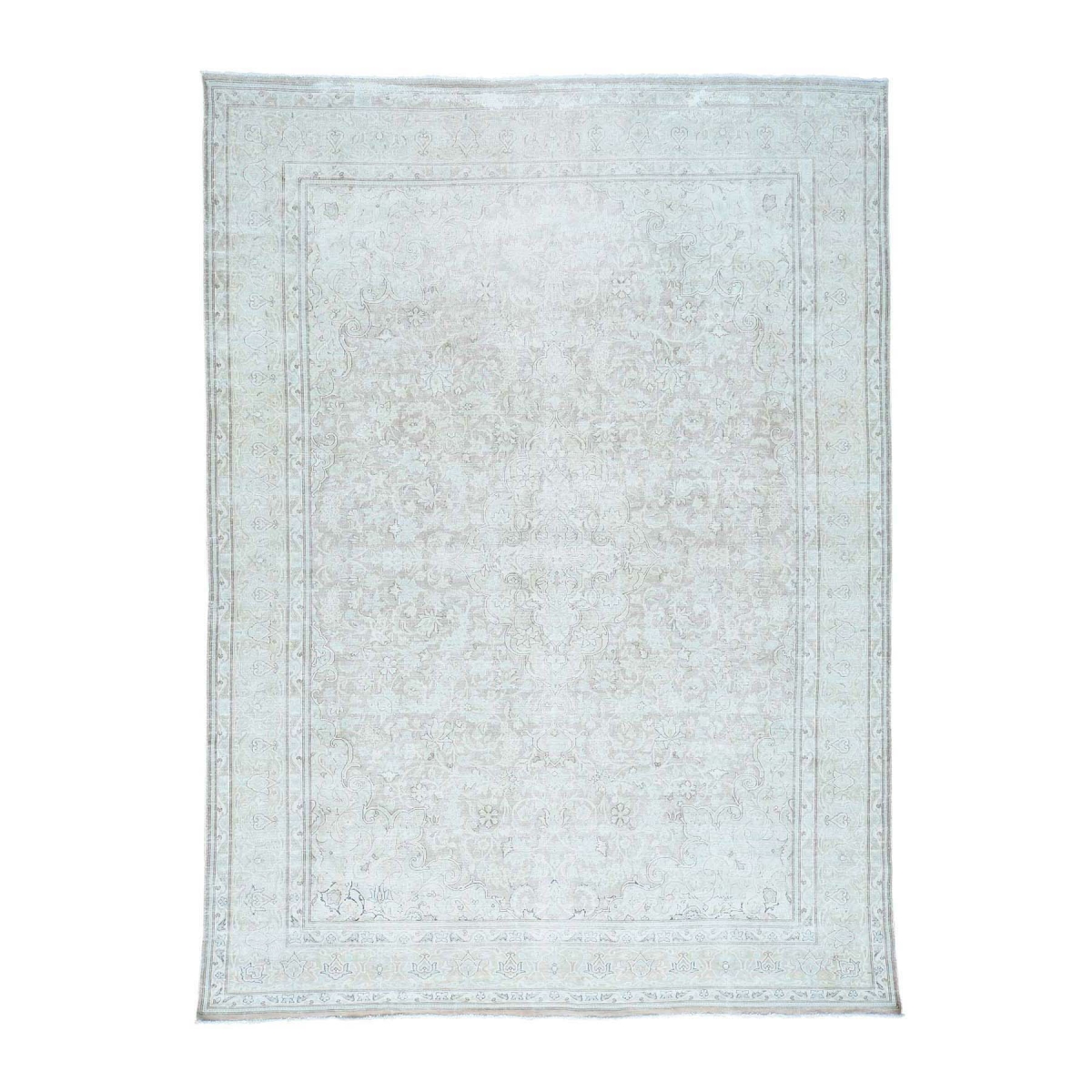 1800 Get A Rug sh34650 8 ft. 10 in. x 12 ft. Handmade White Wash Kerman Zero Pile Shaved Thin Oriental Rug Ivory
