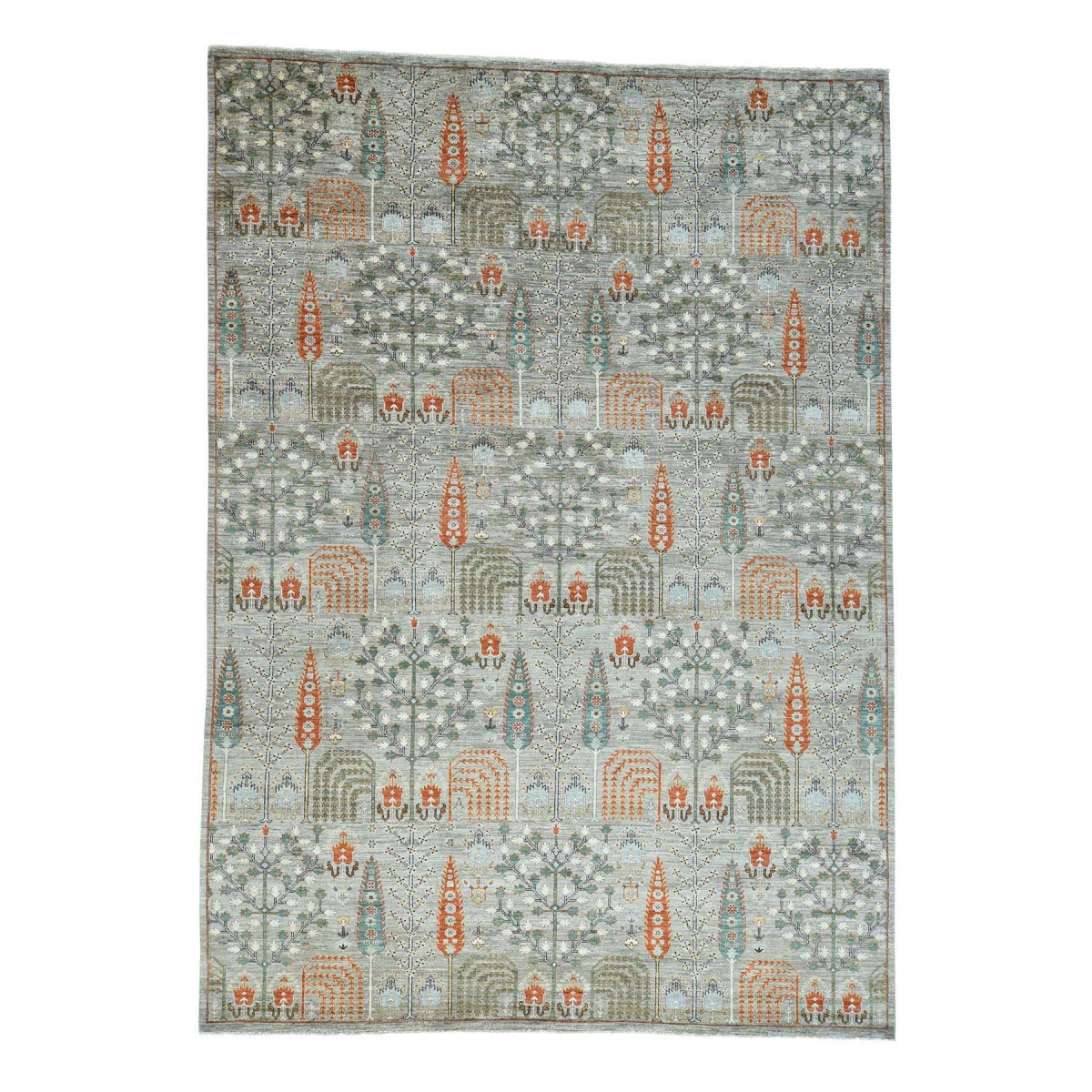 1800 Get A Rug sh34693 10 ft. 2 in. x 14 ft. 6 in. Hand Knotted Willow and Cypress Tree Design Peshawar Rug Grey