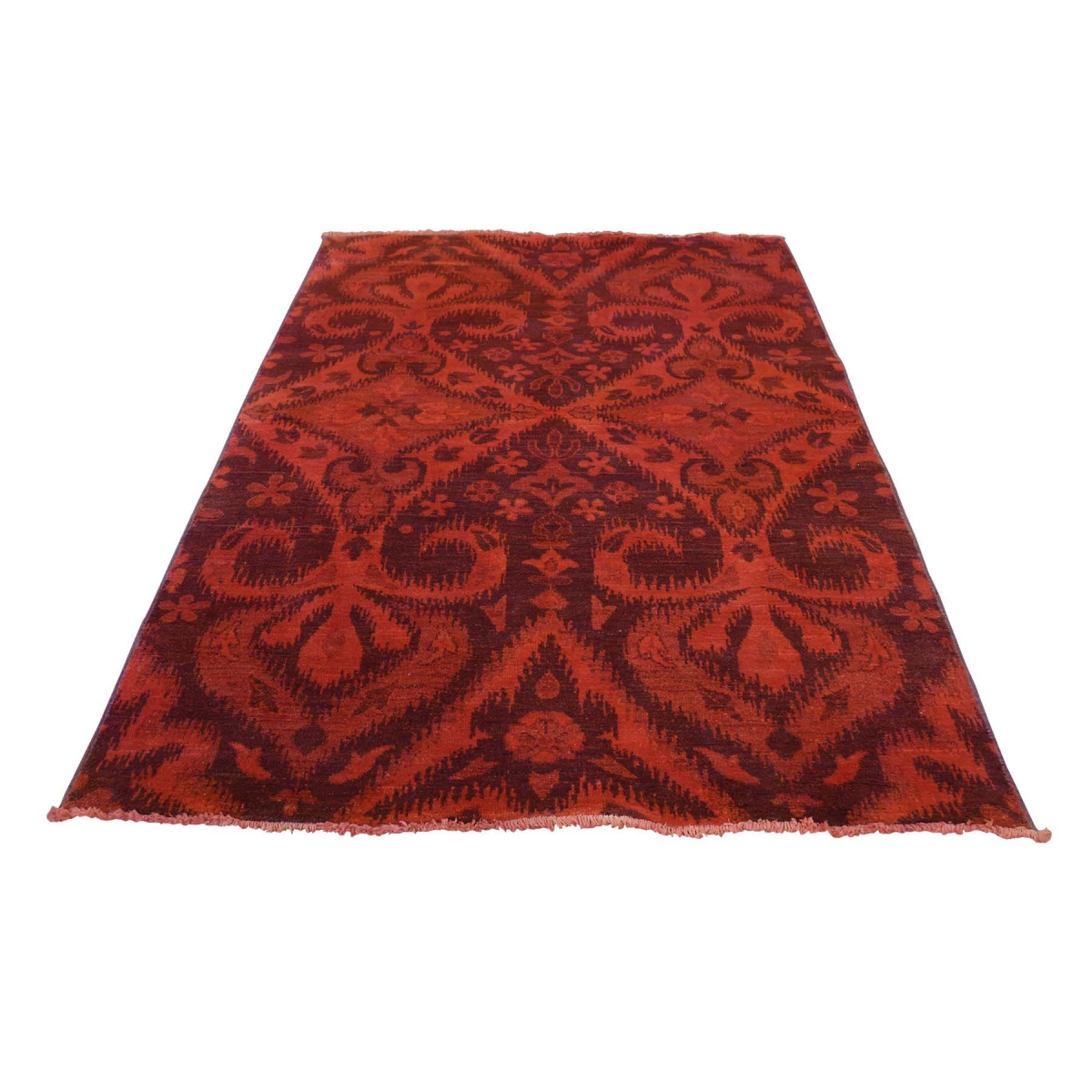 1800 Get A Rug sh34698 4 ft. 1 in. x 6 ft. 1 in. Hand Knotted Overdyed Ikat 100 Percent Wool Oriental Rug Red