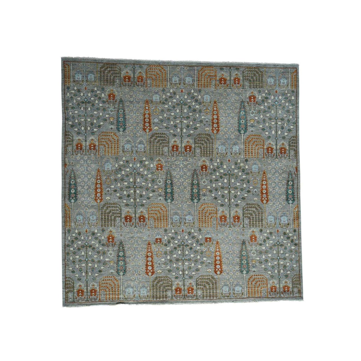 1800 Get A Rug sh34707 10 ft. x 10 ft. Hand Knotted Square Cypress and Willow Tree Design Peshawar Rug Grey
