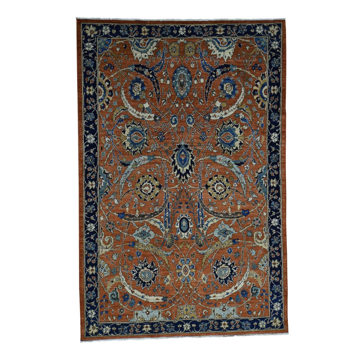 1800 Get A Rug sh34762 6 ft. 1 in. x 9 ft. 3 in. Antiqued Sickle Leaf Design Hand Knotted Pure Wool Peshawar Rug Red