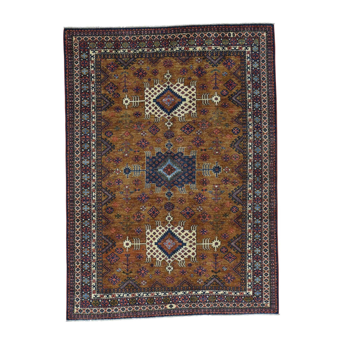 1800 Get A Rug sh34851 6 ft. 4 in. x 8 ft. 8 in. Hand Knotted Afghan Ersari Pure Wool Oriental Rug Honey Brown