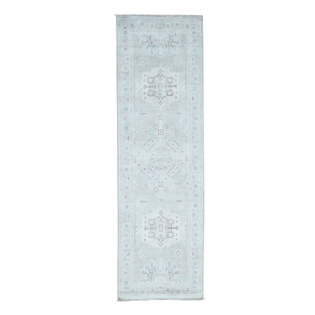 Features- This is a truly genuine one-of-a-kind hand-knotted white wash peshawar pure wool oriental runner rug