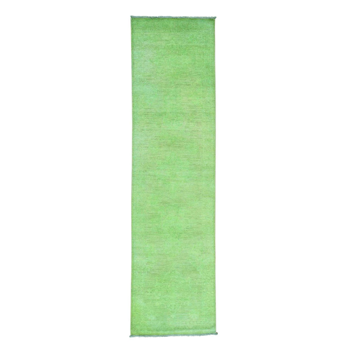 1800 Get A Rug sh34904 2 ft. 8 in. x 9 ft. 10 in. Hand Knotted Peshawar Overdyed Pure Wool Oriental Runner Rug Green