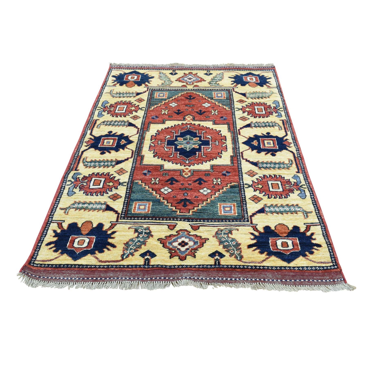 1800 Get A Rug sh34921 3 ft. 7 in. x 5 ft. 1 in. Hand Knotted Afghan Ersari Pure Wool Oriental Rug Red