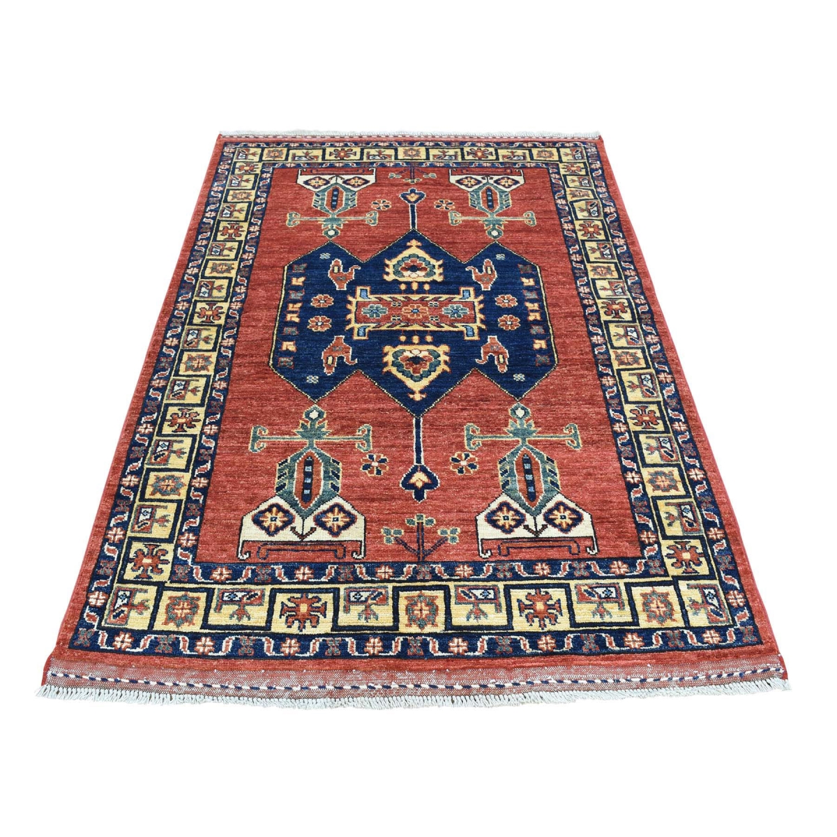 1800 Get A Rug sh34923 3 ft. 4 in. x 5 ft. 3 in. Hand Knotted Afghan Ersari Spaceship Design Oriental Rug Red