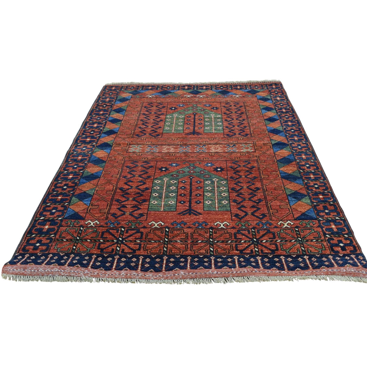 1800 Get A Rug sh34929 4 ft. 3 in. x 6 ft. 2 in. Hand Knotted Afghan Ersari Prayer Design Pure Wool Oriental Rug Red