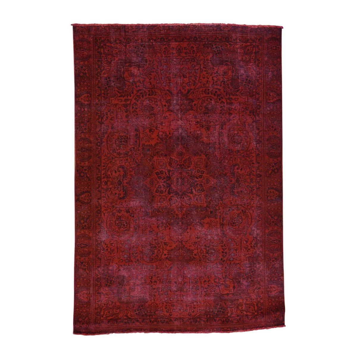 Features- This is a truly genuine one-of-a-kind hand-knotted red overdyed persian tabriz worn oriental rug